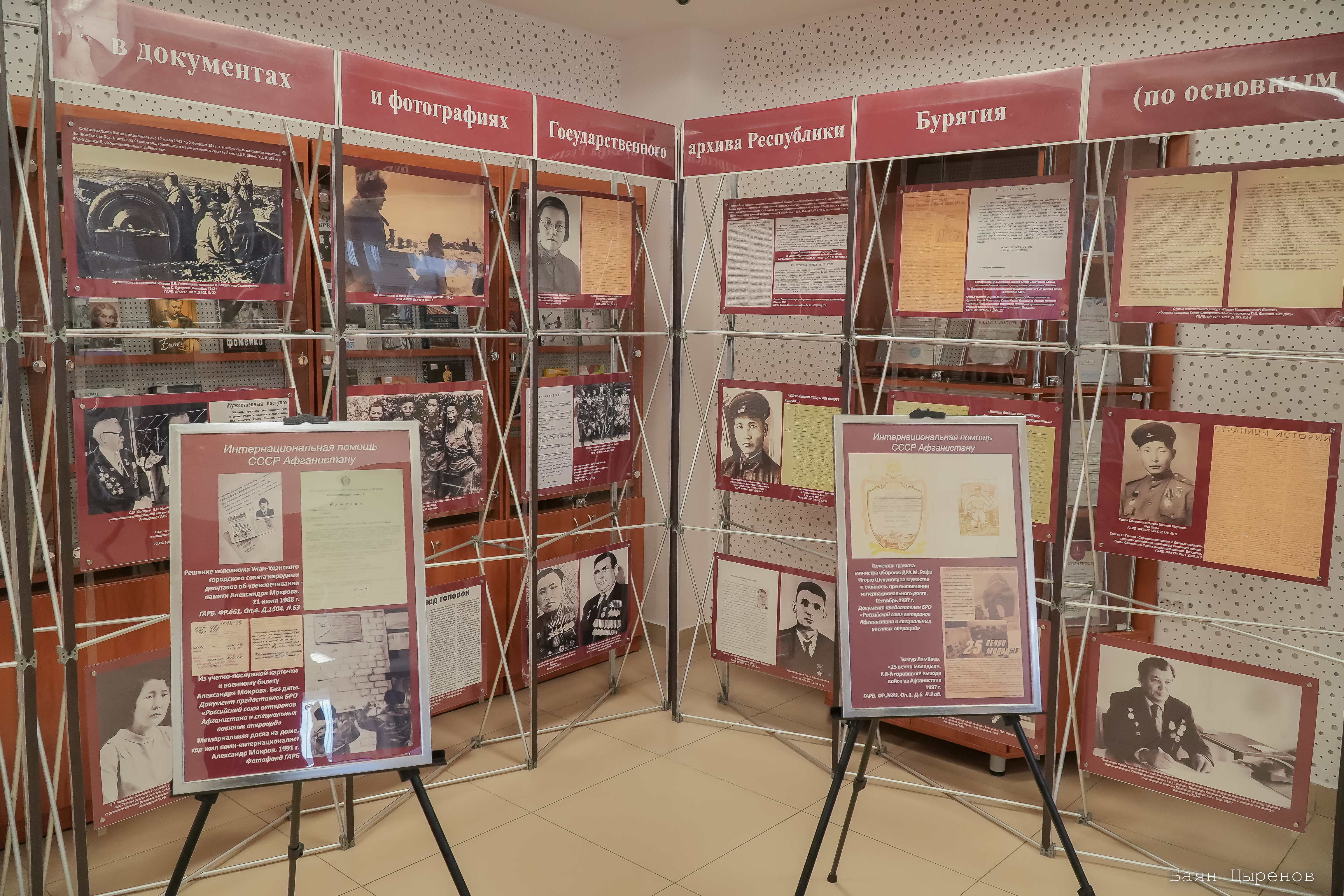 Архивисты представили выставки архивных документов и фотографий об участии жителей Бурятии в великих битвах Великой Отечественной войны 1941-1945 гг., в оказании интернациональной помощи СССР Афганистану и Чеченских войнах. Большой интерес вызвали подлинники документов об участии жителей Бурятии в Афганской войне, в Чеченских кампаниях, в военной операции в Сирии, в Специальной военной операции на Украине, которые Союз солдатских родителей передал на хранение в Госархив. Это фотографии участников, альбомы, письма и т.д. На выставку предоставил свои материалы БРО «Российский Союз ветеранов Афганистана и специальных военных операций».
