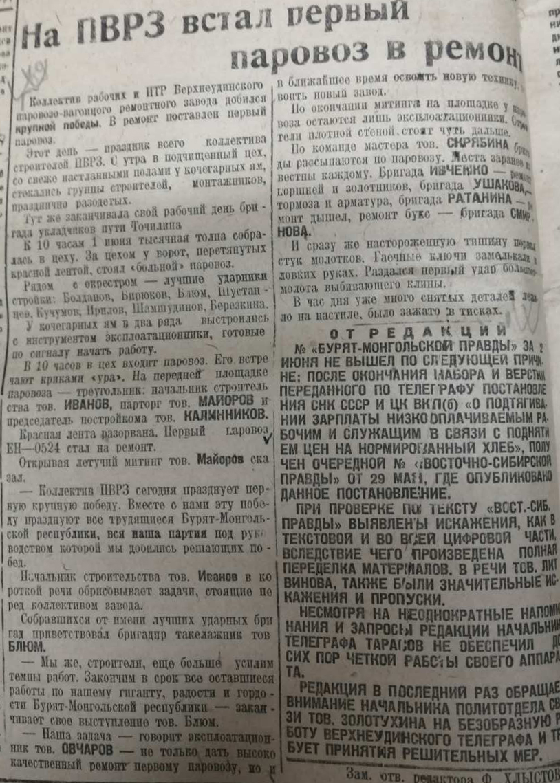 Г.Г. Дамчинов. Газета печаталась на русском языке и имела формат «Бурят-Монгольской правды». Количество экземпляров составляло 1500 в месяц.