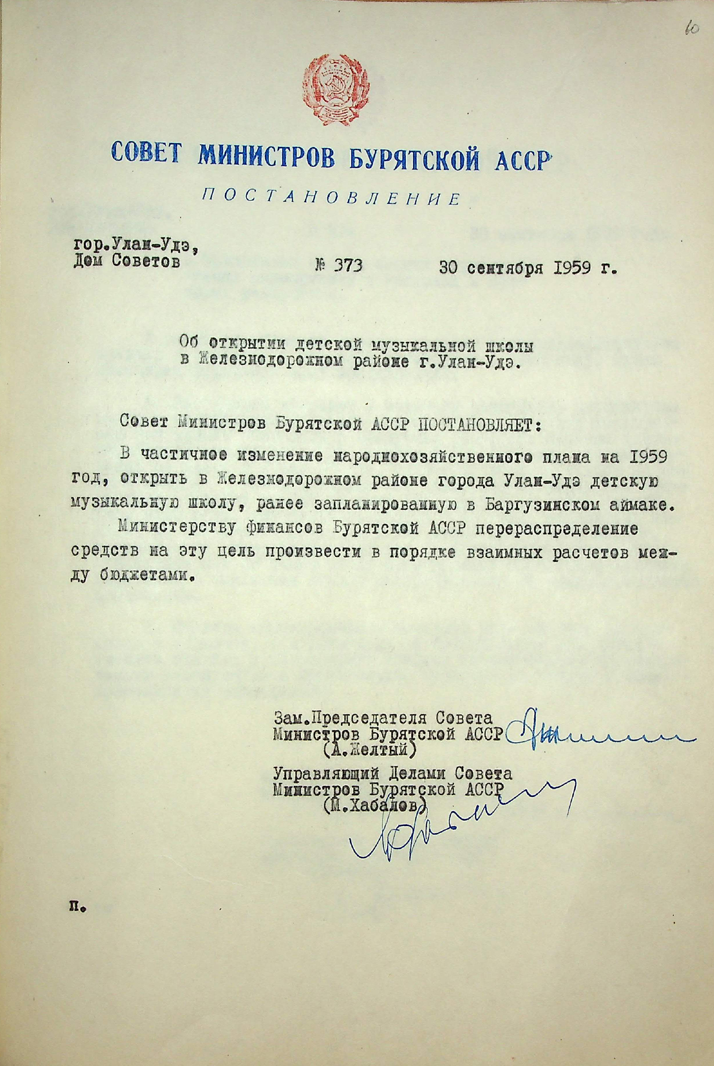 - Открыть с 1 ноября 1960 г. в городе Улан-Удэ Восточно-Сибирский библиотечный институт с факультетами библиотечный и культурно-просветительной работы.