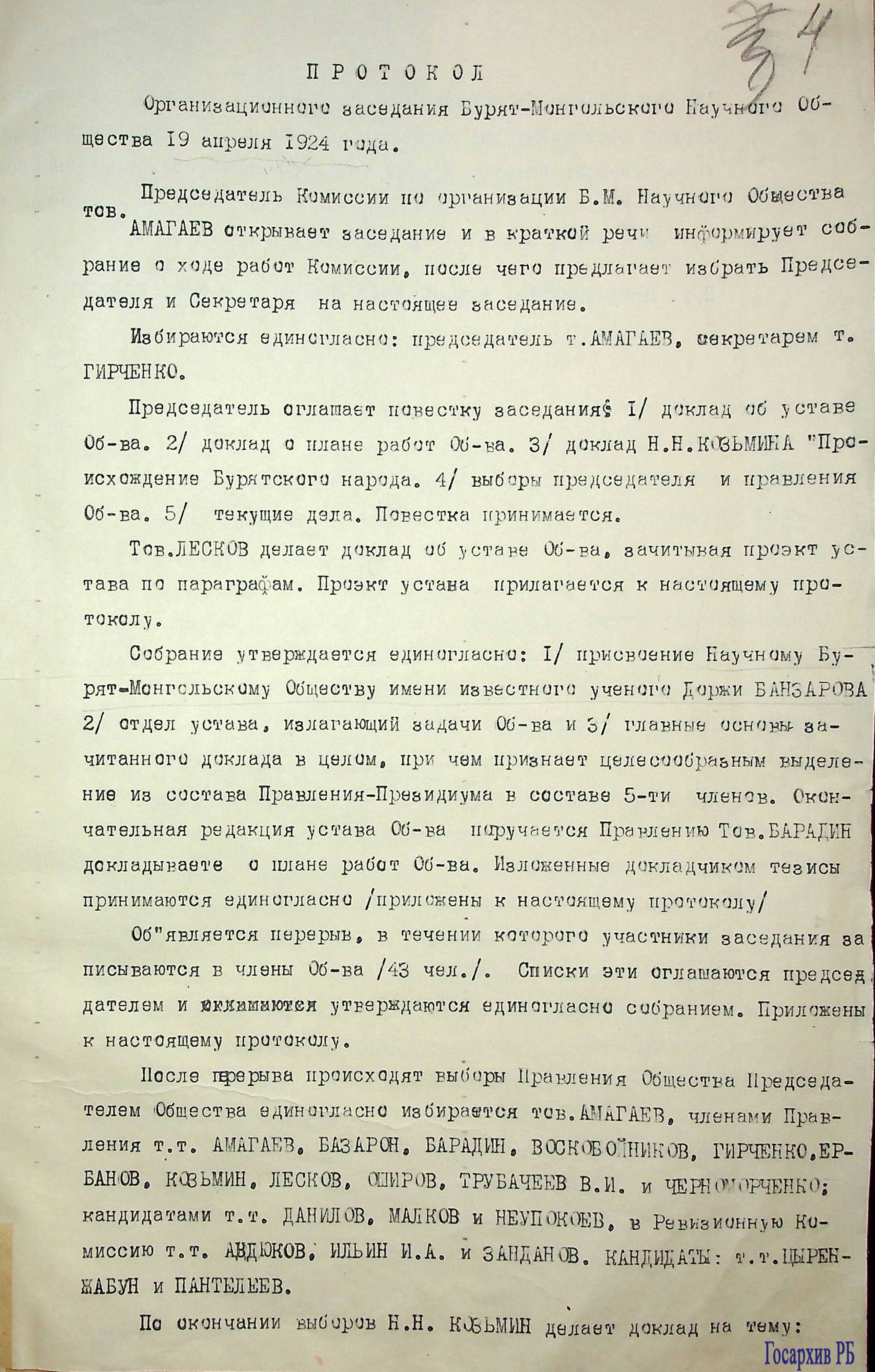 Из Протокола заседания Совета Народных Комиссаров Бурят-Монгольской Автономной Советской Социалистической Республики:
