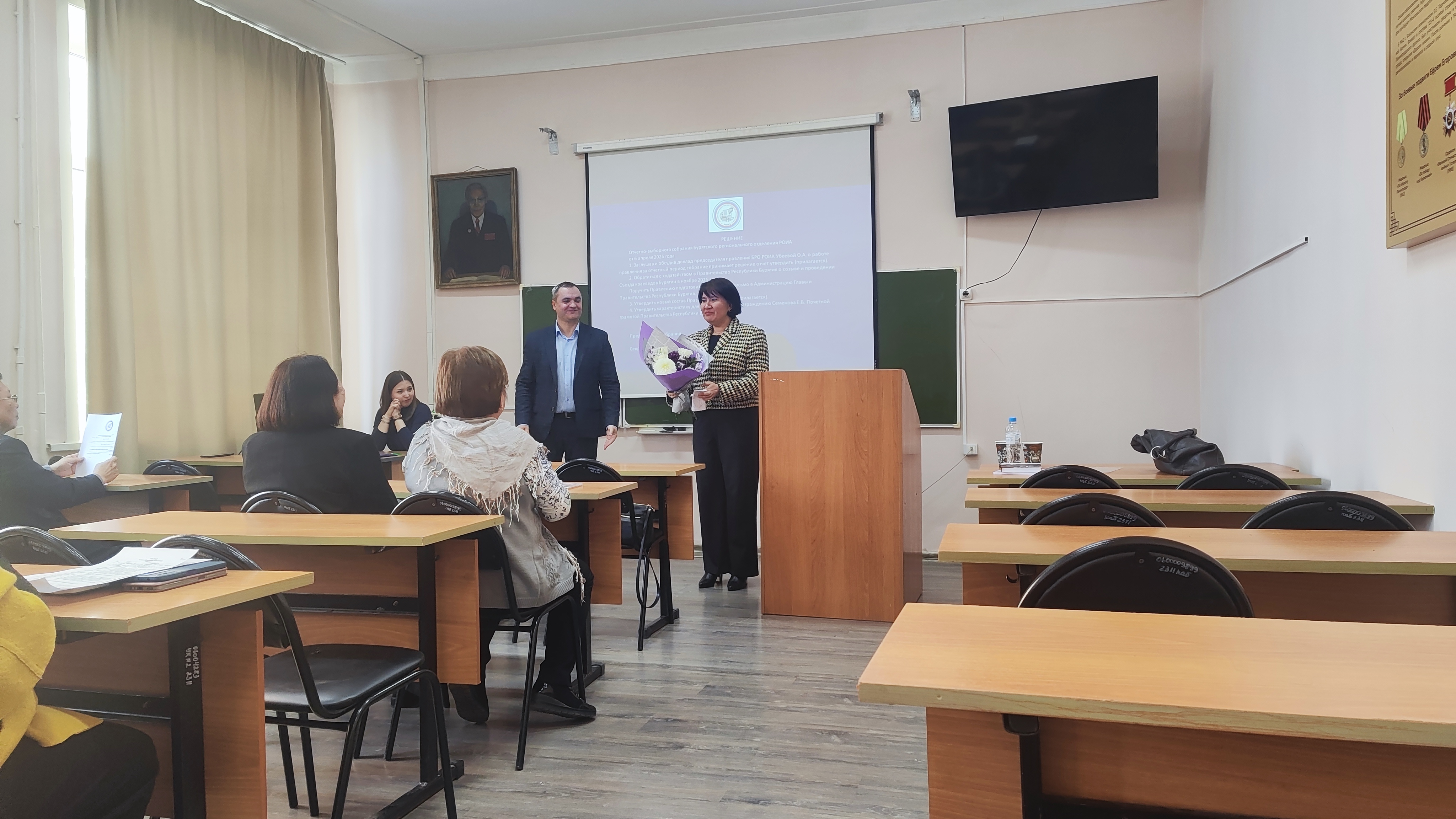 6 апреля 2026 г. в институте истории и филологии Бурятского государственного университета им. Доржи Банзарова состоялось отчетно-выборное собрание Бурятского регионального отделения общероссийской общественной организации «Российское общество историков-архивистов». В отчетном докладе председатель Правления БРО РОИА к.и.н. Ольга Убеева остановилась на реализованных проектах, в том числе – на создании сайта «Доблесть Бурятии. Во имя Родины моей», который вошел в реестр лучших практик программы бесшовного патриотического воспитания.